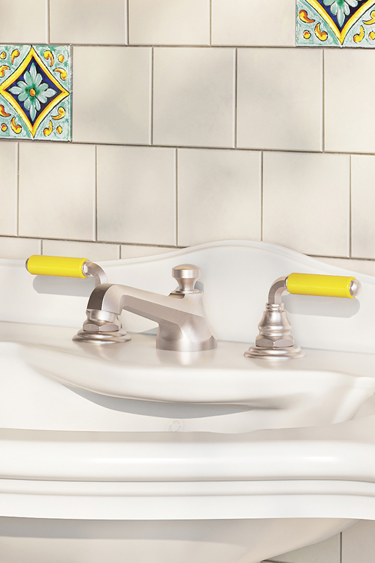 California Faucets’ Del Mar series with Yellow Porcelain handles add a sunny pop of color